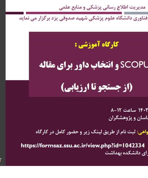 برگزاری کارگاه Scopus و انتخاب داورر برای مقالهروابط عمومی اداره کتب و انتشارات23 دی 1403کارگاه Scopus و انتخاب داور برای مقاله در تاریخ 1403/10/22 در سالن شورای ... اطلاعات بیشتر